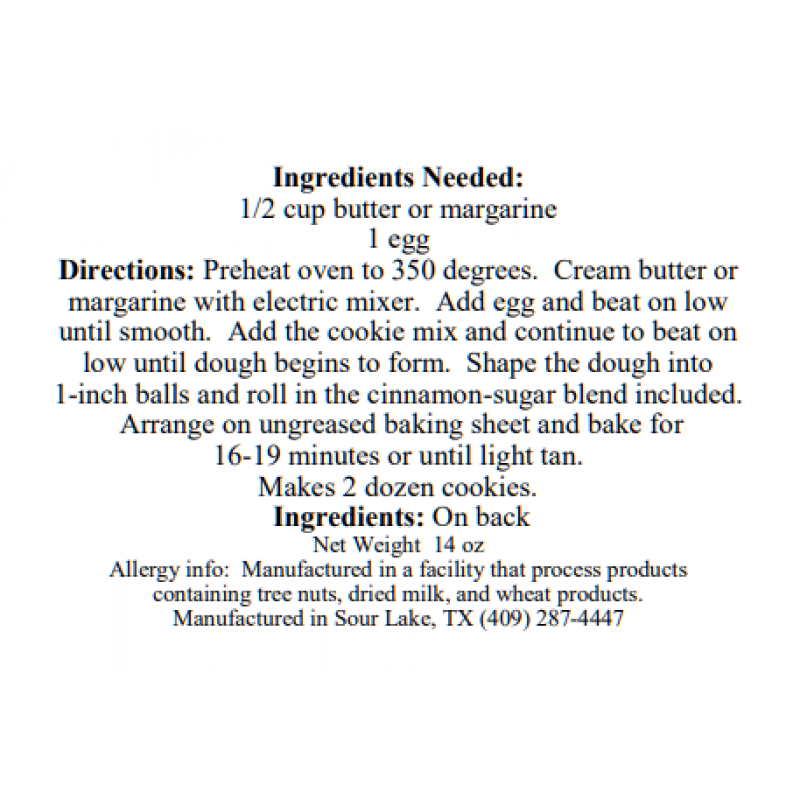 These light, delicate cookies are an all time favorite for many of our customers. Addbutter or margarine and 1 egg. Bake time: 16-19 minutes. Makes 2 dozen cookies.