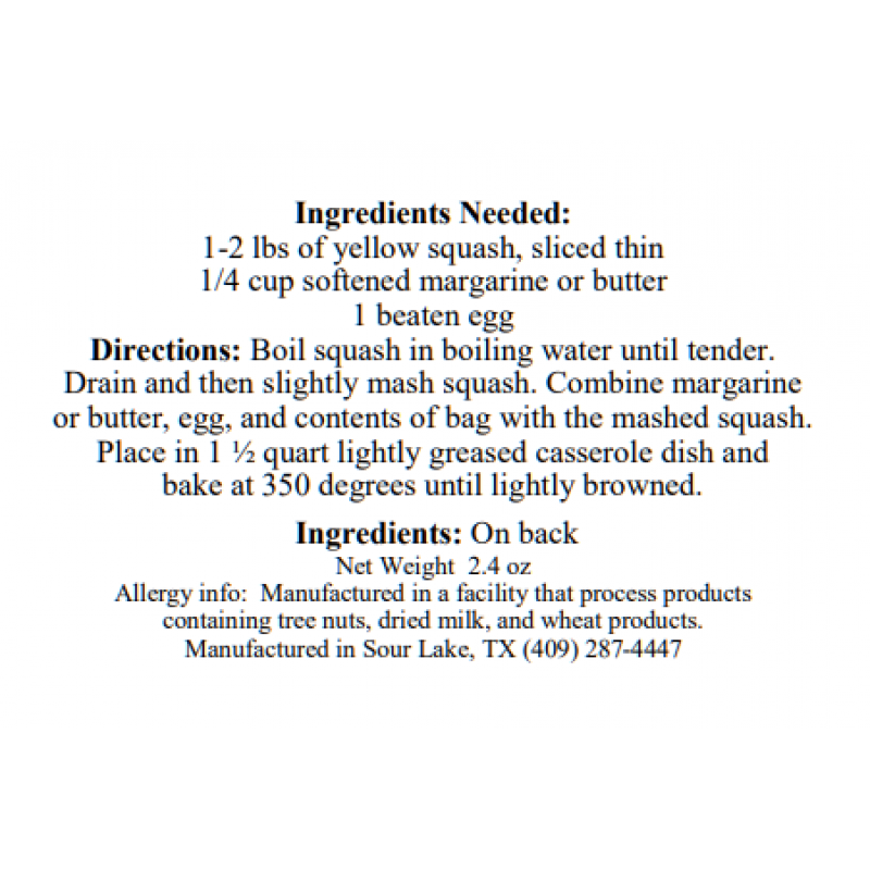 1-2 lbs of squash, cup margarine, and 1 egg.
