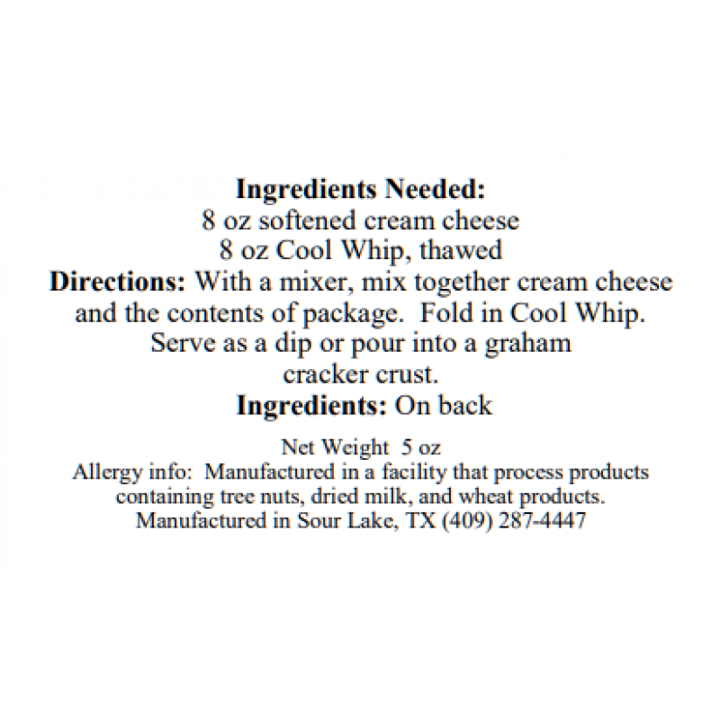 Requires Cool Whip and cream cheese and graham cracker pie crust for pie!