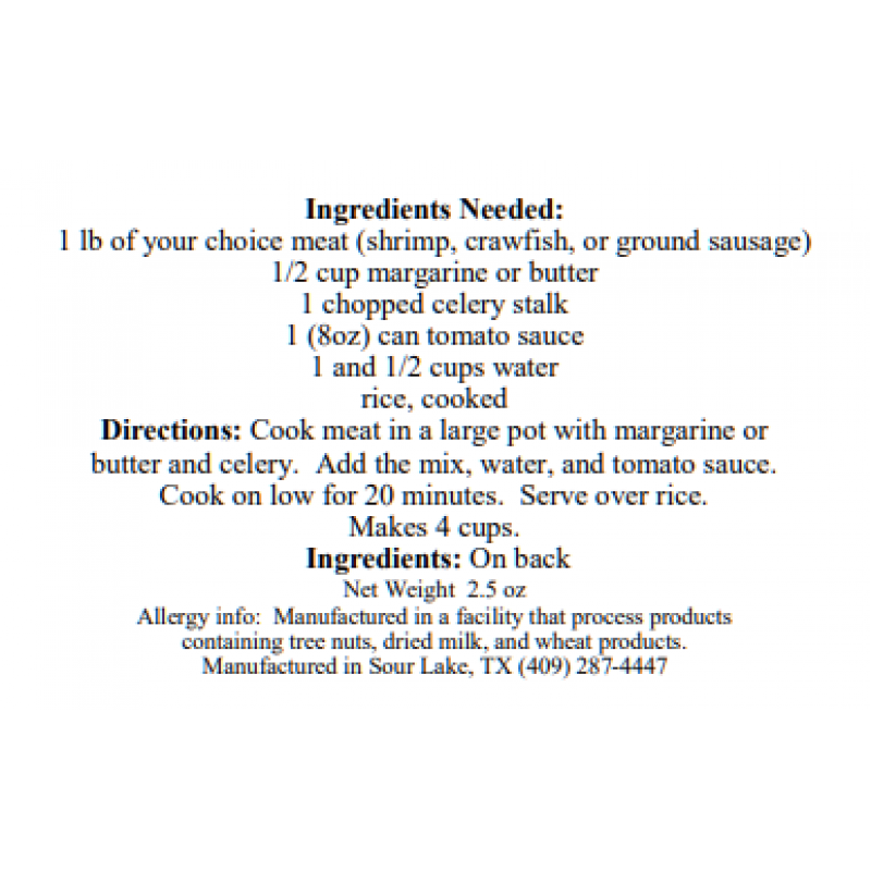 wonderful Cajun cook! Requires your choice of shrimp, crawfish, or ground