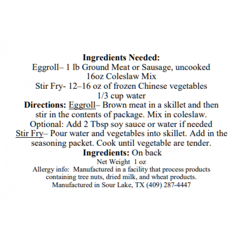 For Stir Fry- A delicious seasoning for your stir fry vegetables. Add 16 oz of your choice of vegetables.