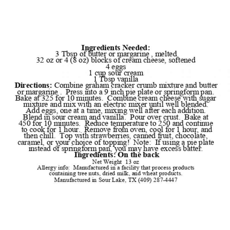 Sensational and rich! Great 'as is' or topped with fruit, chocolate, orcaramel. Add cream cheese, eggs, sour cream, and vanilla. You can topwith strawberries, canned fruit, chocolate caramel, your choice!!