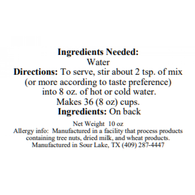 Our best selling tea! To serve: stir about 2 tsp. of mix into 8oz.of hot water. Makes 36 (8oz) cups (also good with cold water).