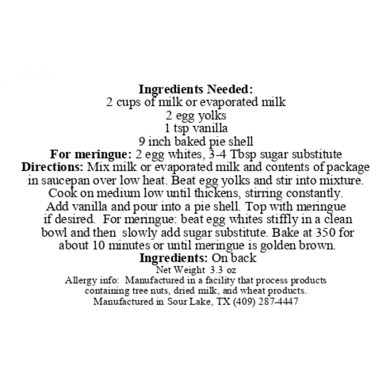 as delicious! Requires baked pie shell, eggs, milk and vanilla.