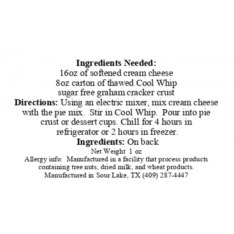 Sugar Free Peaches and Cream Pie Mix - Gluten Free