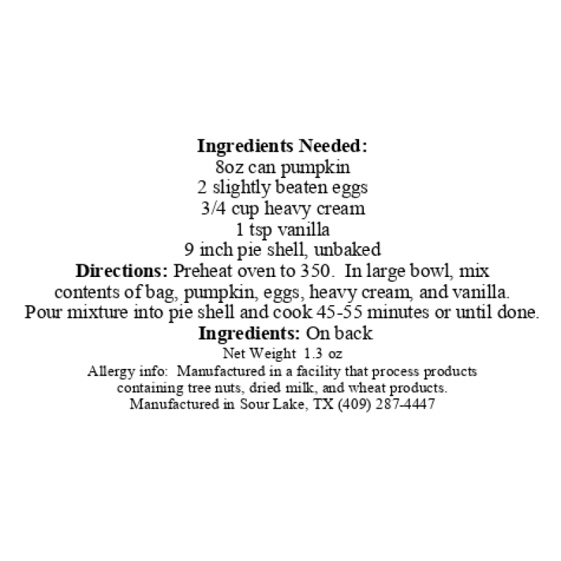 My Poppy's Sugar Free Pumpkin Pie Mix - Gluten Free