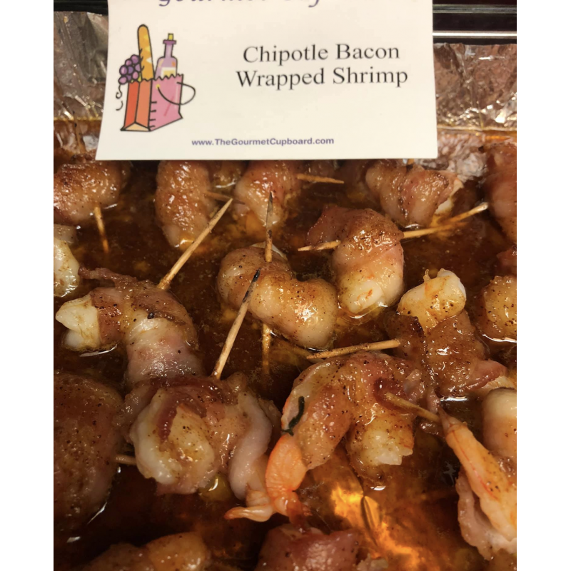 Candied bacon with a little spice of chipotle give these irresistible shrimp a double thumbs up!