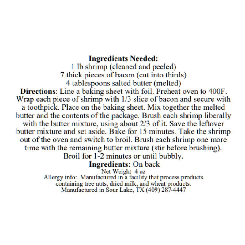 Requires shrimp, bacon, and butter.