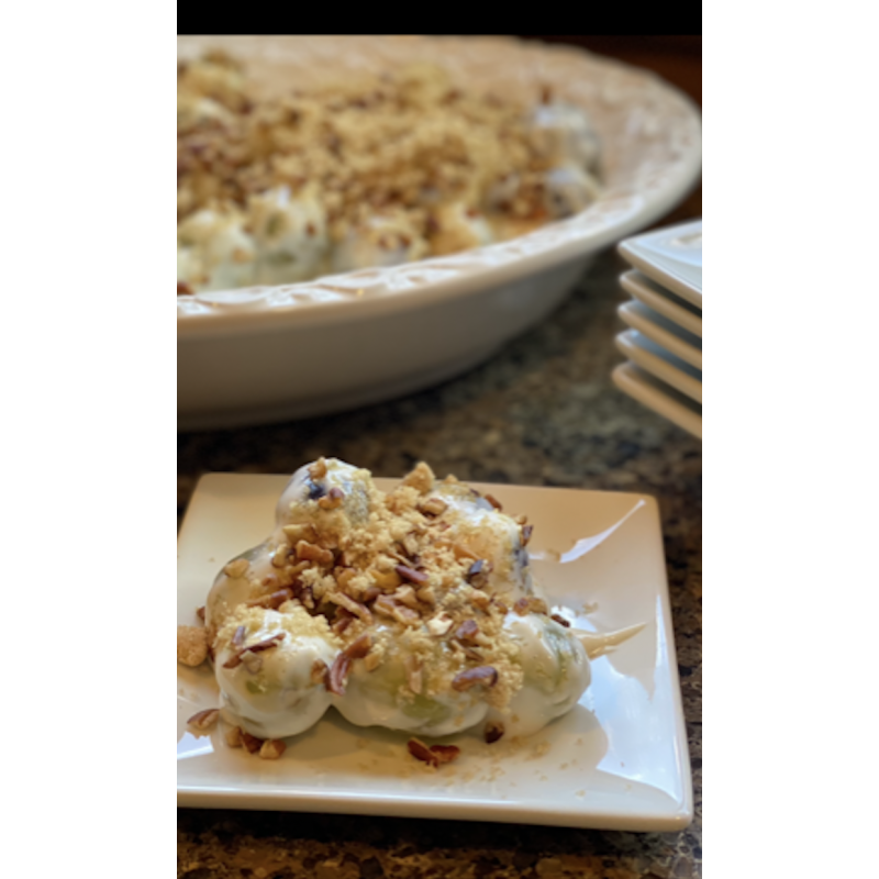 This creamy salad is topped with a sweet mixture of pecans; we think that this mix will be in high demand.