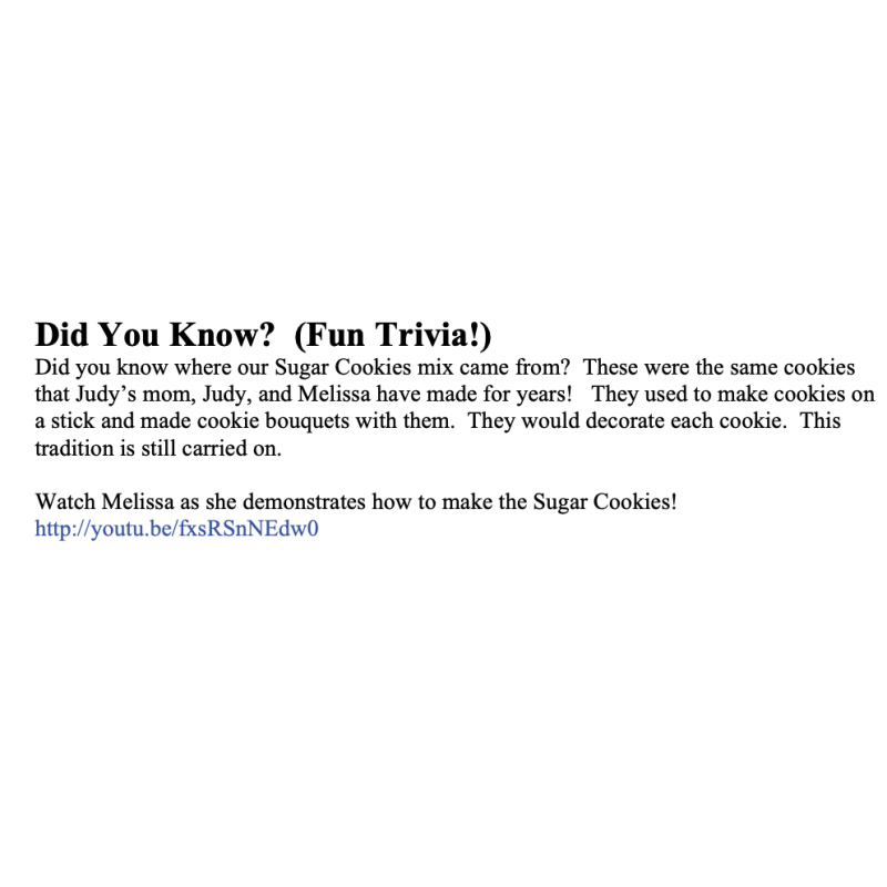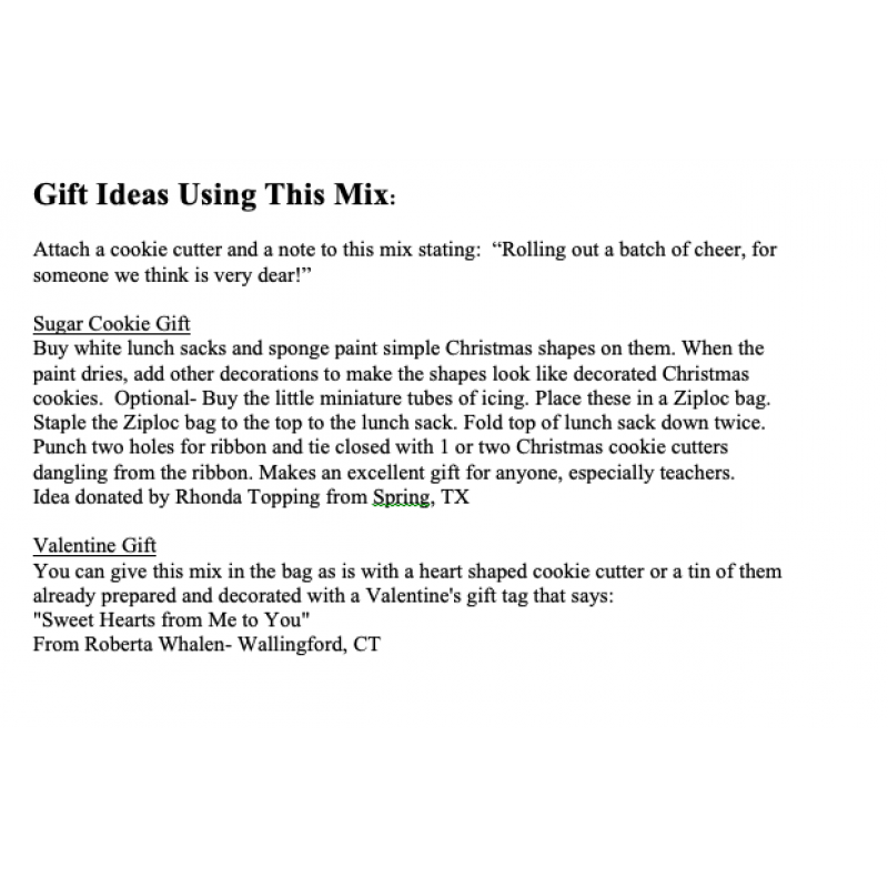 Makes perfect cookie cutter cookies every time. Addbutter, vanilla extract and eggs. Makes 24 cookies.